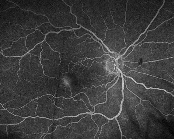 Idiopathic Juxtafoveal Macular Telangiectasia (MacTel), type 2 in a 56 year old female patient. The BCVA was 20/50.