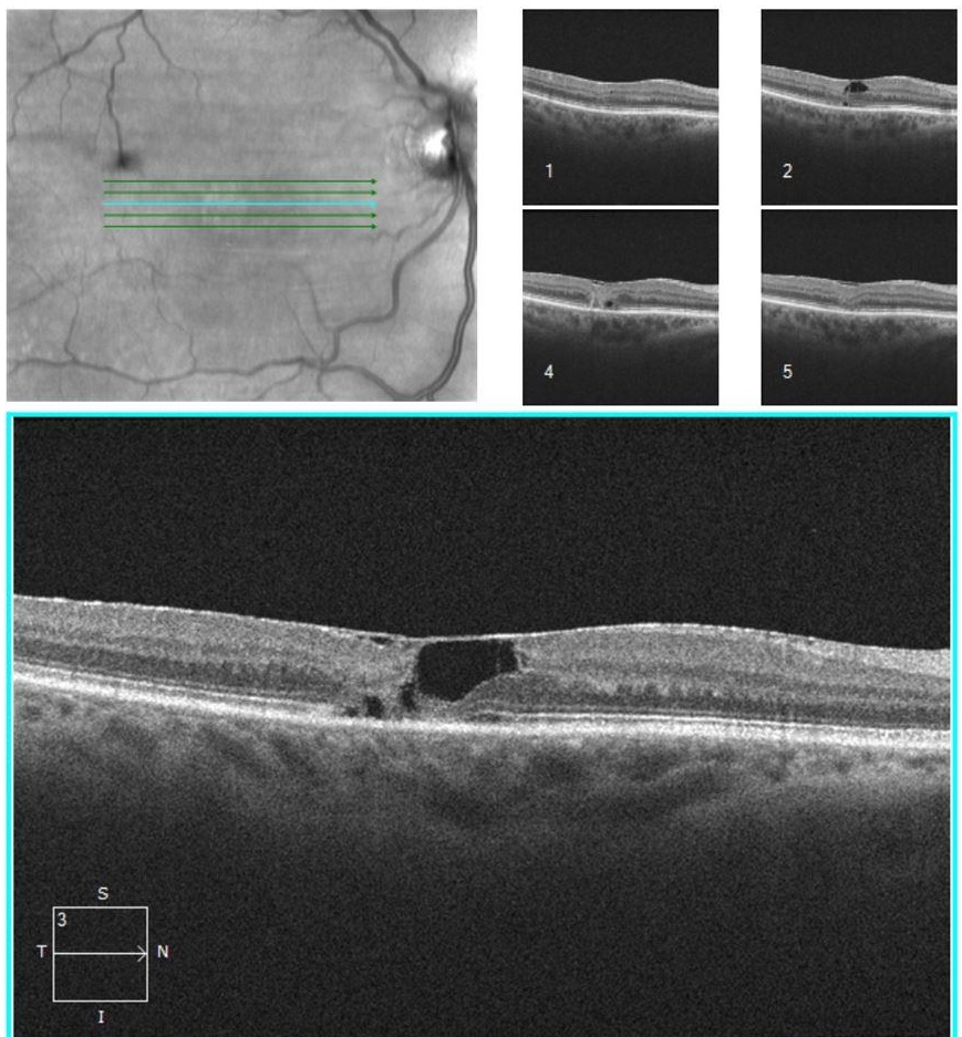 cystic changes. Over time, focal areas of ellipsoid zone loss develop. Those tend to expand overtime.